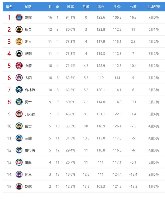 雷霆赢球后取得8连胜,战绩16胜1负高居联盟第一,雷霆拥有历史顶级防守,容错率太高。爵士输球后5胜10负排名西部第10。